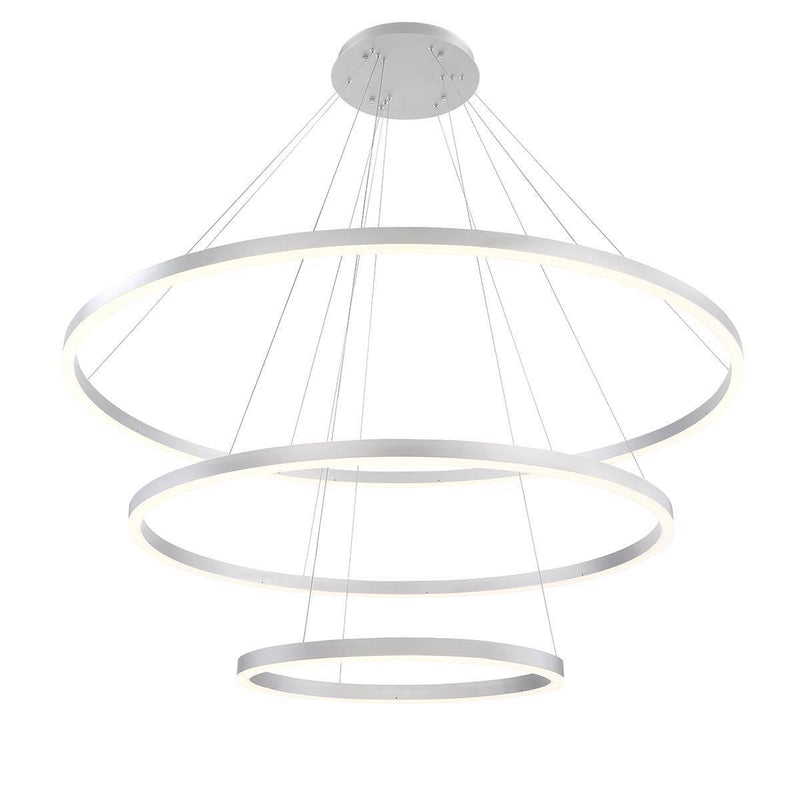 Boasting a classy design with an ultra-modern appeal, the Eurofase Spunto Silver Three Tier LED Chandelier is a perfect addition in the indoor spaces. The chandelier has beautiful three-tier pattern with ring design that is placed in a descending order. With the canopy design, this beautiful chandelier becomes easy-to-install. The silver finish with opal shade lends it a sophisticated appeal and allows it to complement with any theme; be it modern or classic. Style and convenience go hand in hand with LED chandelier as it is energy efficient and consumes less power supply.