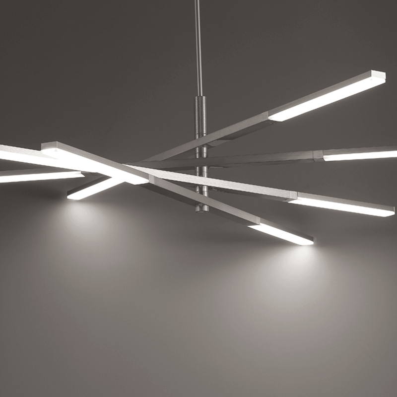 The unique inspiration of the Stacked Chandelier from Modern Forms grants it an element of exclusivity as it exudes an industrial vibe and presents a profile that is like helicopter rotors. This light fixture comprises multiple panels that look like rotor arms and they hang through a straight swivel support. The aerodynamic design of this chandelier makes use of advanced technology and its driver is positioned in the canopy. The offbeat styling of this modern luminaire makes it suitable for commercial, residential and even hospitality avenues. It is available in brushed aluminum, anodized black and brushed brass finishes.