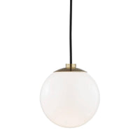 The Stella Mini Pendant by Mitzi is a minimalist suspension light for residential and commercial venues. Designed in 2017, this fixture casts light through round opal glossy shade for a diffused effect of light. A metal cap finished Stella’s design in simplicity that will look great above the kitchen island. Hang a single pendant or three in a row. Stella can be clustered in varied heights for a modern interior setting. It is lit by a halogen bulb. You can buy this mini pendant in aged brass, old bronze, or polished nickel finish.