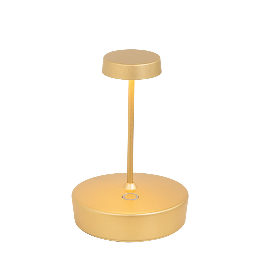 Shower any space inside or outside your home with the cascading glow of the Swap Mini Rechargeable LED Table Lamp from Zafferano America. This Federico de Majo design underscores his process of balancing decoration and function with fun. Here, fun is achieved with the take-anywhere functionality of a rechargeable. A USB contact charger works with a battery in the minimalist base to provide over 13 hours of use. This compact base also features a touch dimmer for elegant control. A slim column gives the lamp head on top a floating illusion. While on, LED light creates a gorgeous gradient of tones on the column as it creates a cast ambient glow