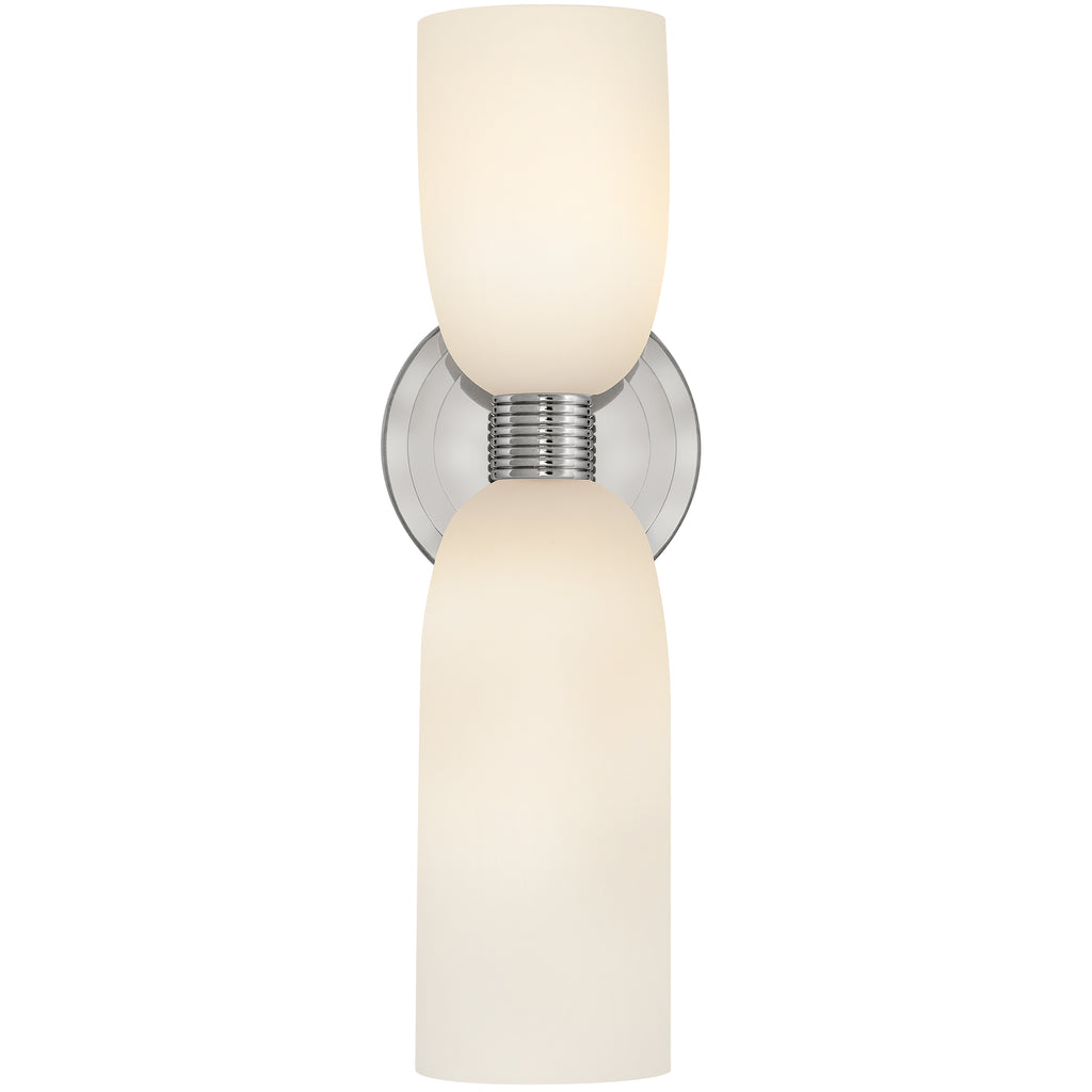 Graceful curves and delicate details define Tallulah. The smooth etched opal glass adds a touch of softness to balance ribbed metal details. Hardware featuring our Lacquered Brass or Polished Nickel finish creates a nuanced retro look that makes Tallulah the perfect addition to any decor