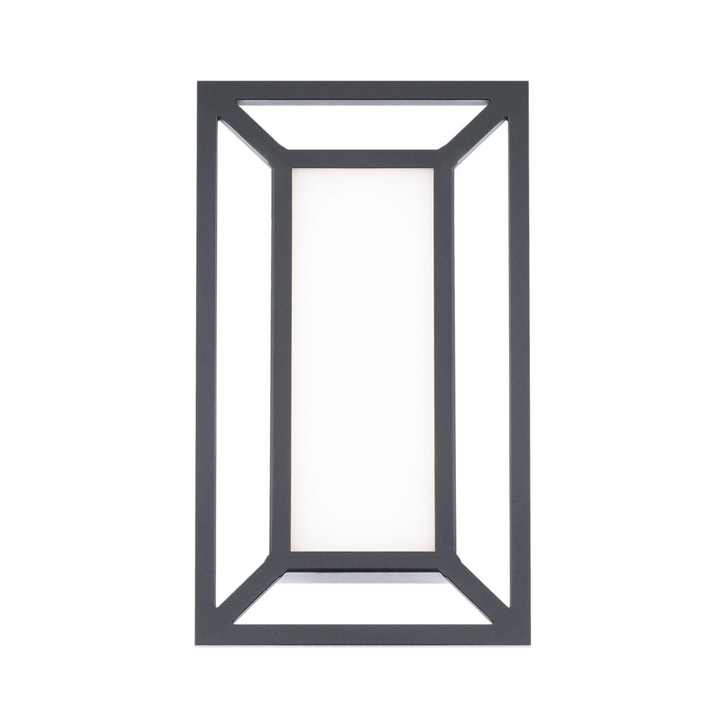 The Tate LED Outdoor Wall Sconce from dweLED is an attractive geometric piece, heightening the home's welcoming atmosphere and its distinct architectural features. By keeping its silhouette minimalist, this sconce can make an impact on modern and contemporary spaces. It accents the wall with a rectangular metal frame divided by open shapes. An etched acrylic diffuser rests at the center, concealing the bright LED array behind for a glare-free lighting experience. The LEDs give the diffuser a uniform spread of clean light. The light filters out to create a bright, inviting mood.