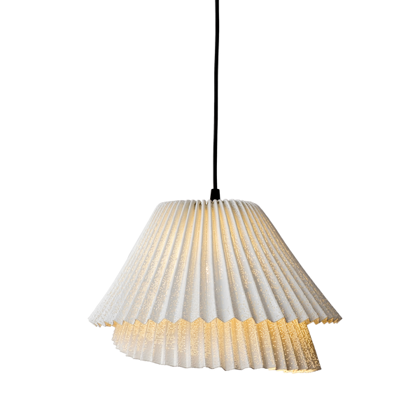 Tempo Andante is a pendant lamp from the collection with the same name designed by Arturo Álvarez. Made of painted stainless steel mesh, it is handmade in Spain. This material, crafted in fine pleats, forms two overlapped layers that create two different lamps full of dynamism. Andante and Vivace, two liveliness shapes born from one. The representation of two instants generated by the same movement at a different tempo.