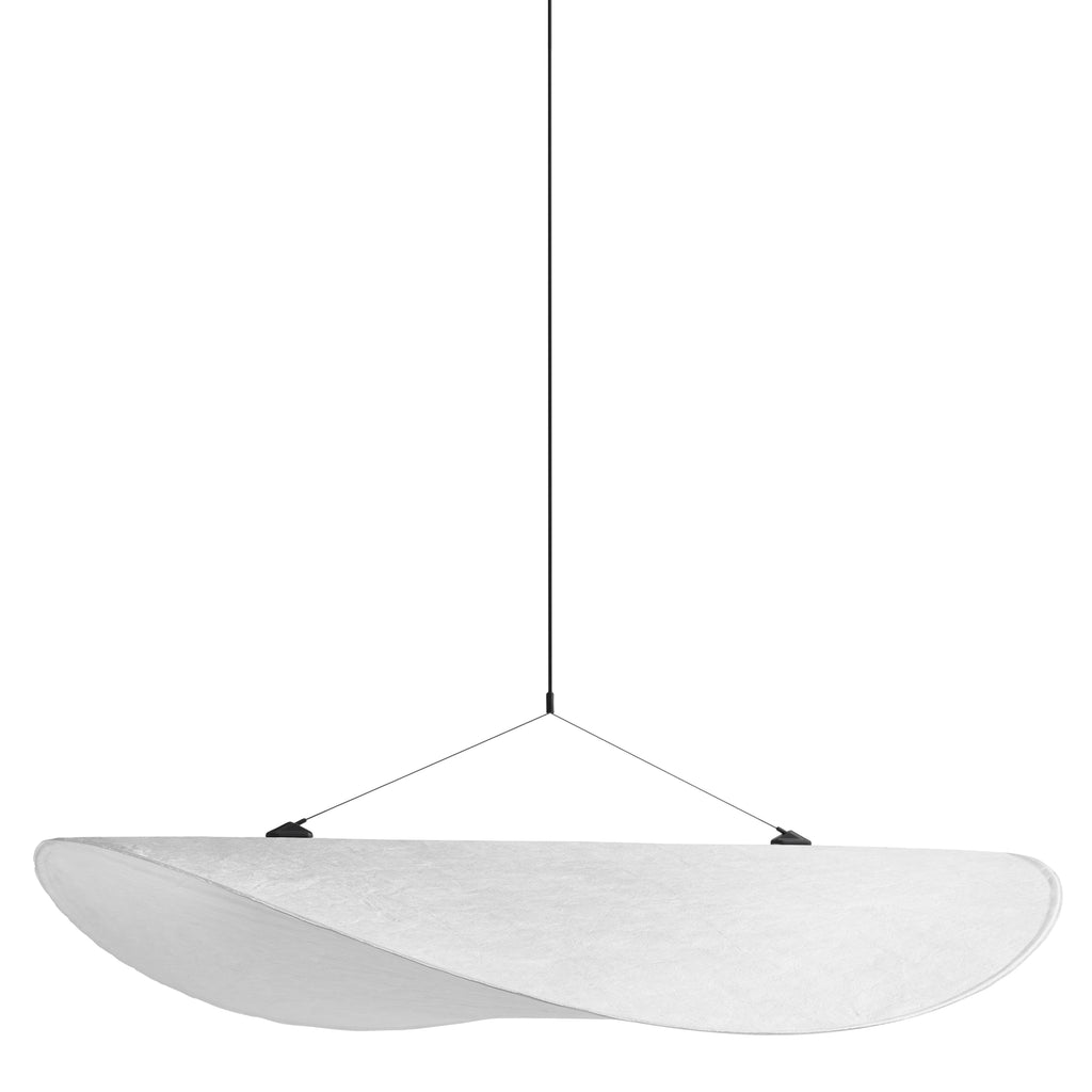 Stretching to over one metre in length, the Tense Pendant Lamp appears like a soft cloud has floated in. A truly modern construction, its soft Tyvek diffuser represents a material both durable and soft – whilst being 100% recyclable. The flexibility of this paper-like diffuser allows its slim frame to accentuate the cloud like qualities of the Tense Pendant Lamp. Finished with a slimline LED light source, all components fit into a slim box for ease of transport. A truly modern approach to lighting.