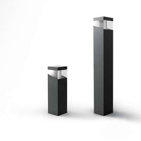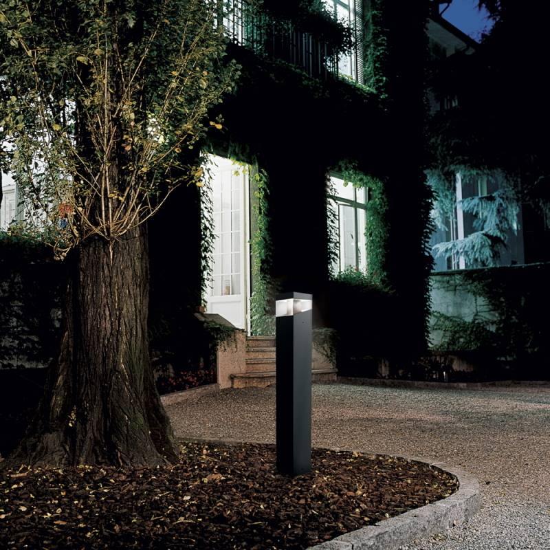Tetragono Outdoor LED Floor Lamp by Artemide is a square shaped LED bollard with a radial emission light. This LED light source is thoughtfully designed to fetch the floor lighting surrounding the appliance without being too harsh or glaring on the eyes. The fixed mounting optical unit is IP65 dust-proof and made of heavy duty aluminum material. It features dark grey/black painted finish with a 3-stage outdoor treatment. Tetragono Outdoor LED Floor Lamp by Artemide is wired with the outside connector and hosted within the bollard. Available in small and large size options, it comes in black finish.