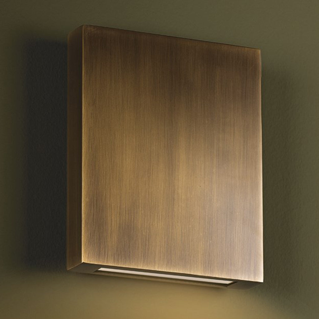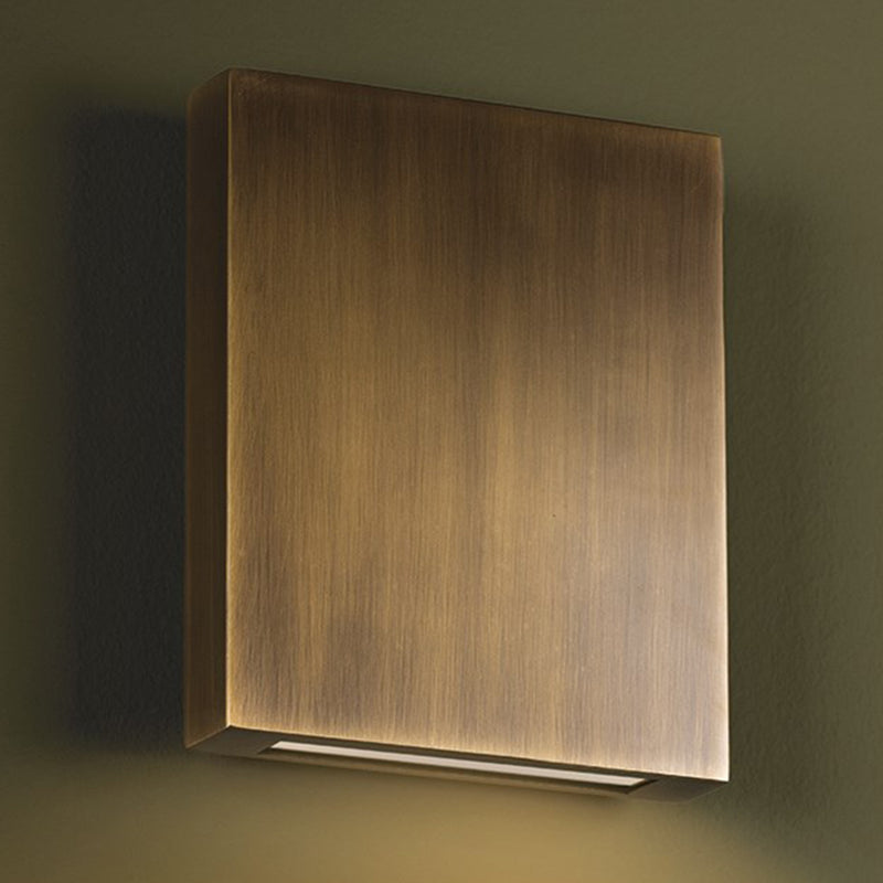 The beautiful Patina Brass finish elevates this straightforward, rectangular silhouette. Thayne's modern architectural design features an etched ""spread"" lens that evenly distributes the light from the LED bulb. The slim profile makes this outdoor sconce extremely usable in a variety of exteriors.