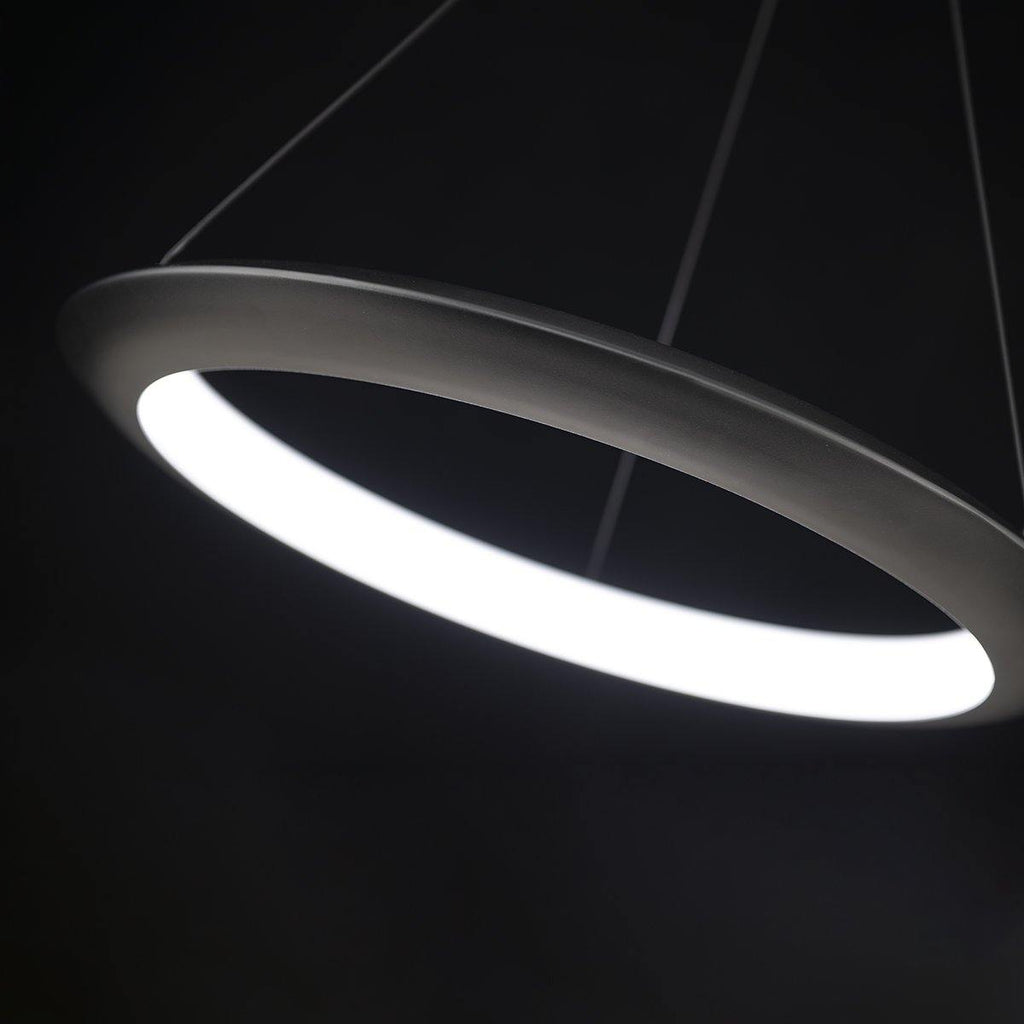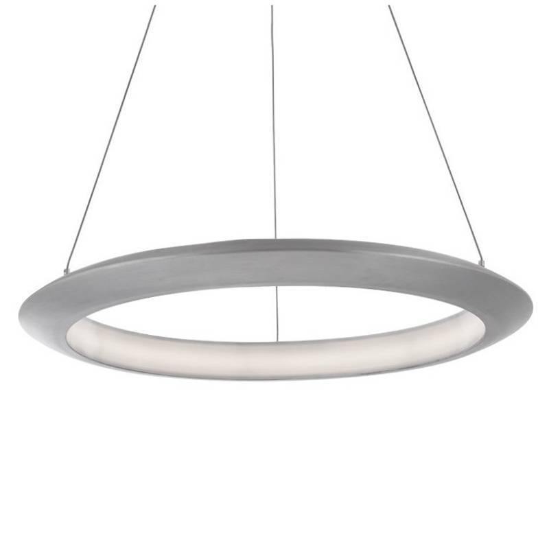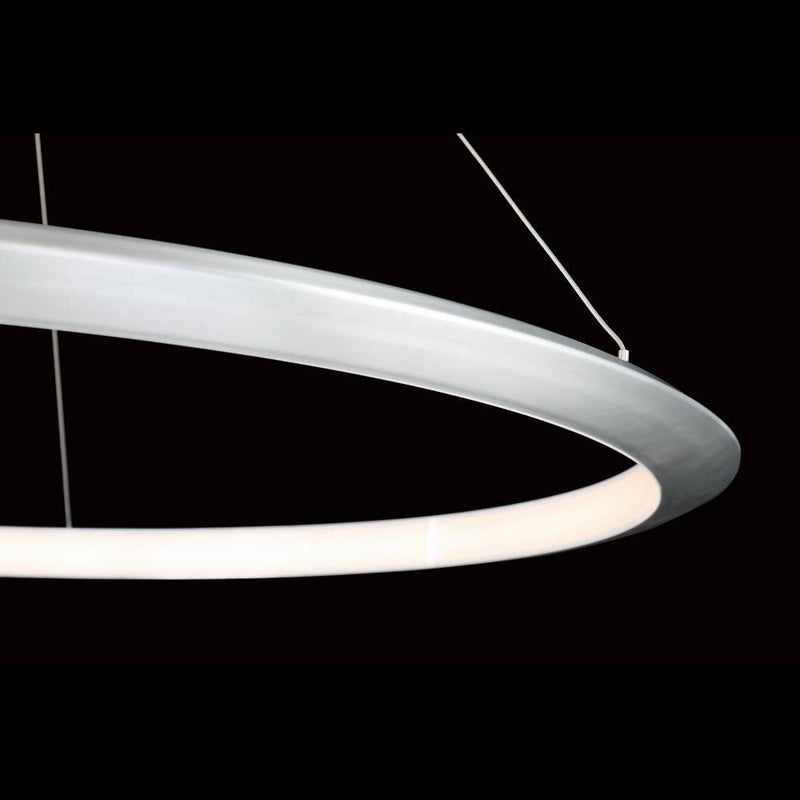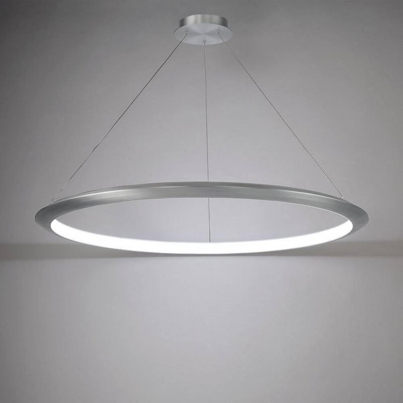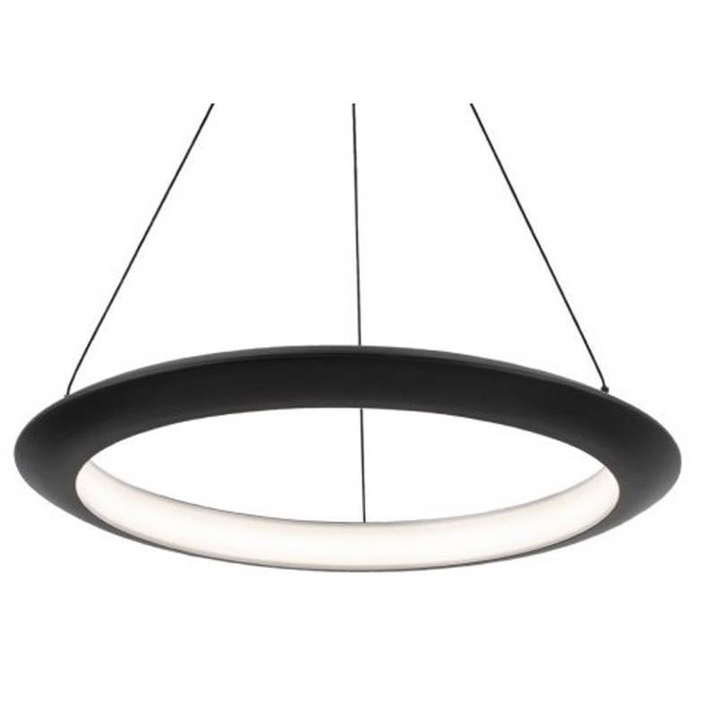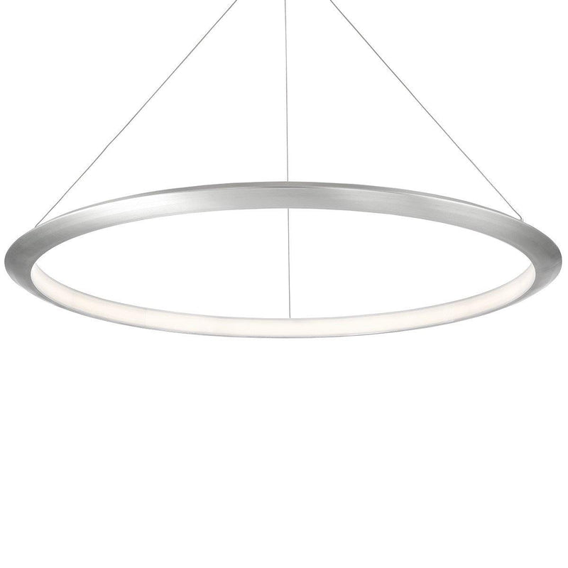 Create the perfect ambience with The Ring Pendant by Modern Forms. This pendant has a refined and contemporary look that promises to make a statement in every room. The ring is suspended through an ultra-thin cable that can be adjusted according to the height of the room. This pendant is made of metal and has 2 finish options – black and brushed aluminum. Depending on the size of a particular room, the desired pendant can be chosen as it is available in 3 width options – 24, 36, and 48.