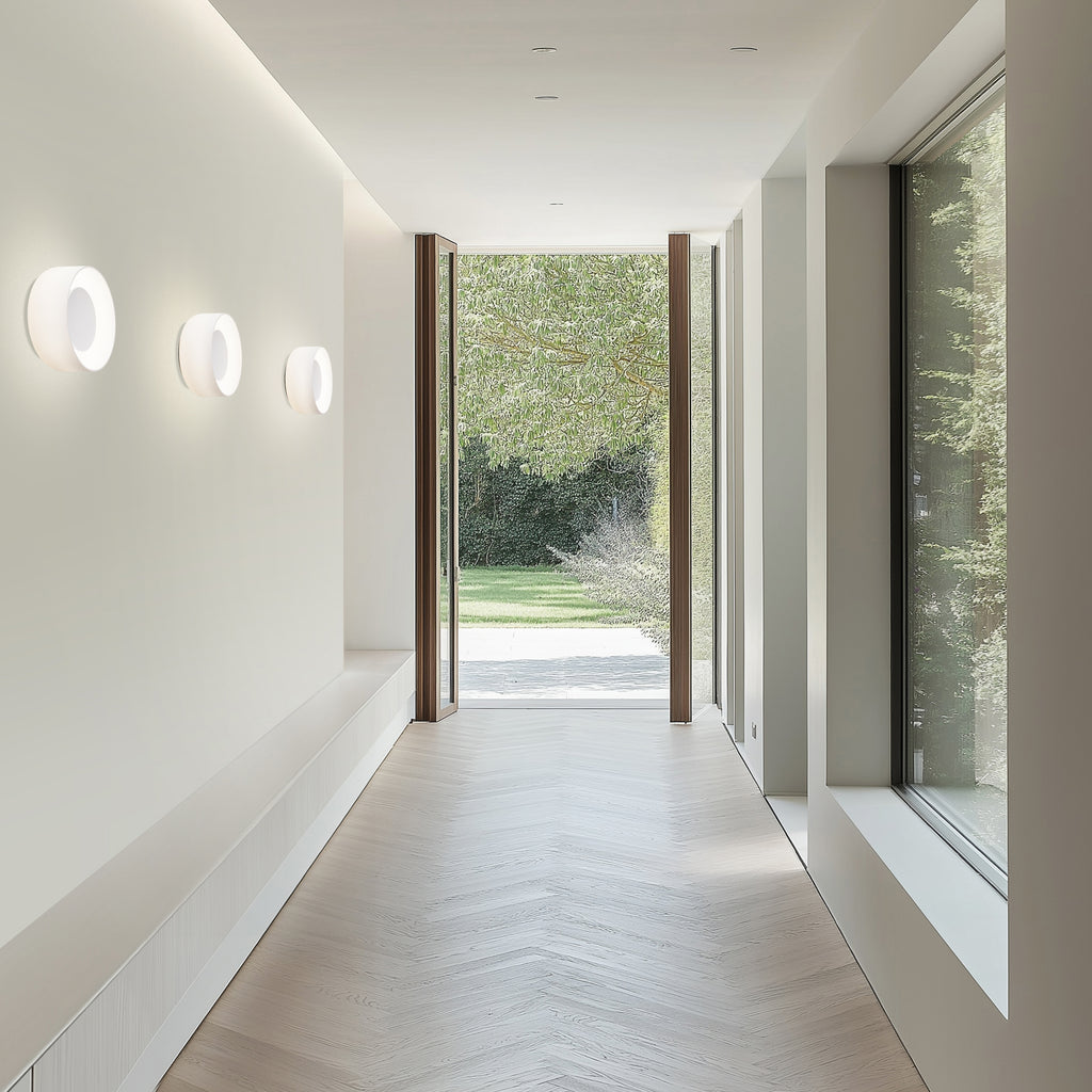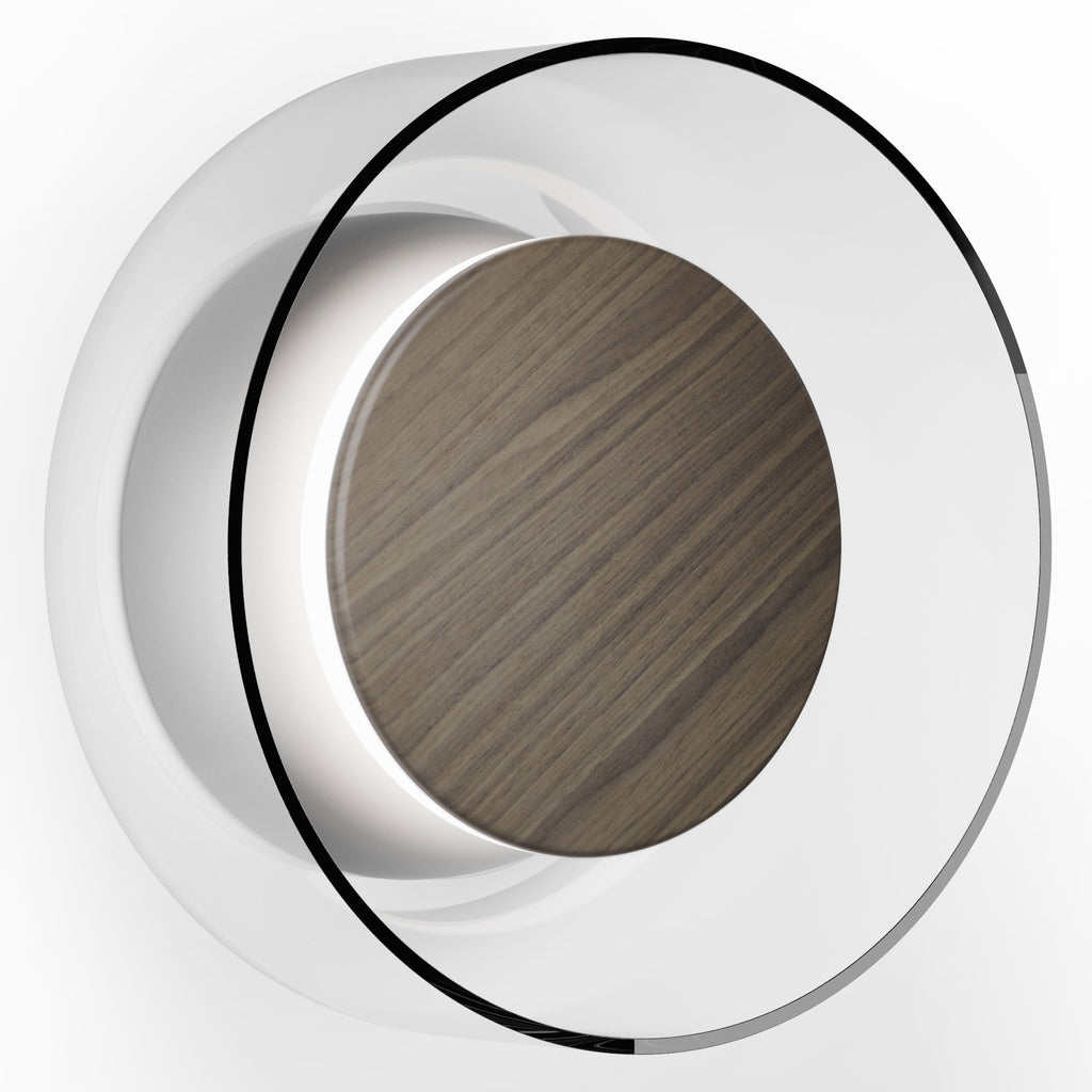 Totem Sconce’s crafted minimalist form showcases a refined mouth-blown glass diffuser paired with the Totem LED Puck light source to seamlessly usher a captivating light unto any wall or ceiling. The LED Puck features fieldselectable color temperature (2700K, 3000K, 3500K) casting a glare-free ambient wash of light onto the mount surface. Pucks are available in Matte White, Dove Gray, and Black, with optional premium Walnut Essence and Brass Faceplates to complement the base finishes. Glass shades are available in two etched finishes in White and Amber, and two gloss finishes in Clear and Smoke, to suit a variety of environments and décor styles. Totem Wall’s modular design is ADA compliant and ideal for lining corridors, living areas and bedroom spaces for hospitality and residential spaces alike.