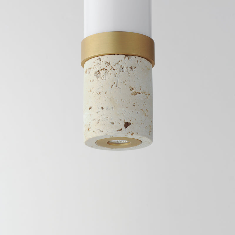For thousands of years, the use of this stone has been integral to our building history. Now reimagined in a modern context, columns of Travertine have been assembled with LED tubes in an attractively minimalist composition. The perfect neutral for a space that is searching for more organic elements. Available in sconce and multiple configurations of pendants.