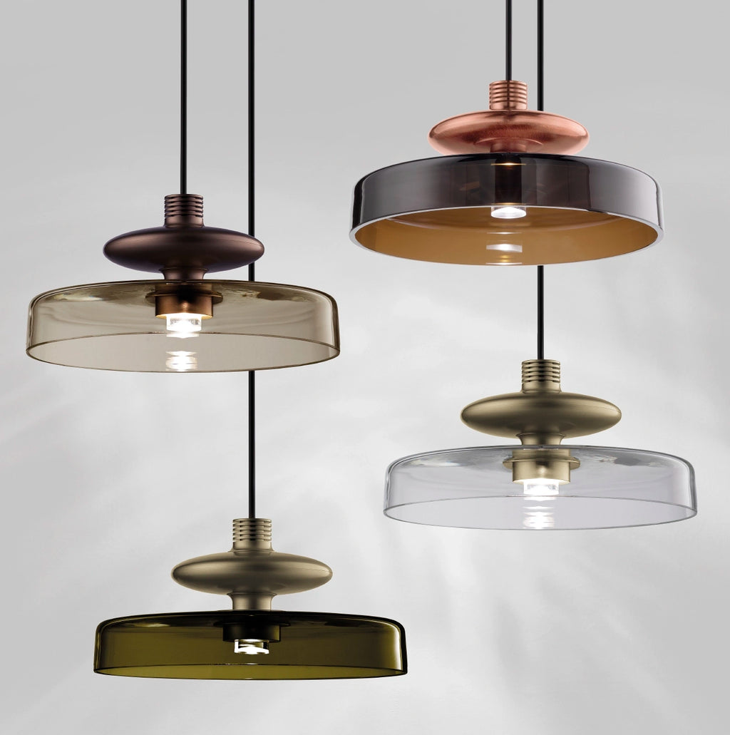 The “technicity” of the metal element combined with the blown glass diffuser gives Tread an “industrial” style. An object reminiscent of vintage electrical equipment for its particular shape, in which the finned heat sink, combined with blown glass, becomes a distinctive element. Tread creates an avant-garde and stylish atmosphere by combining crystal, smoke, burnt earth and old green glass with copper, gold and bronze matt finishes.