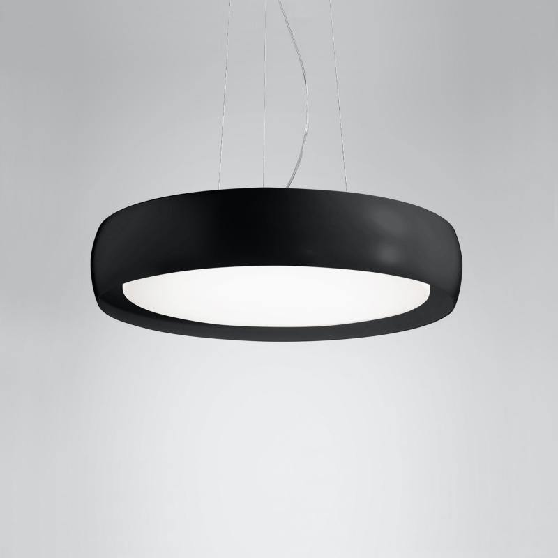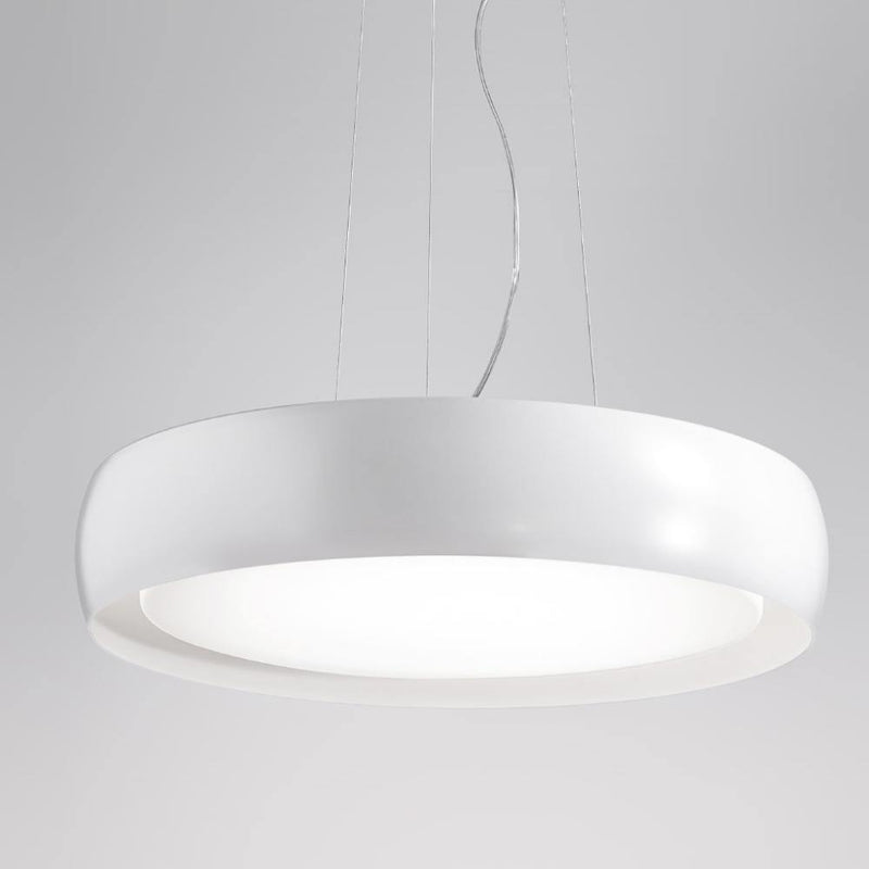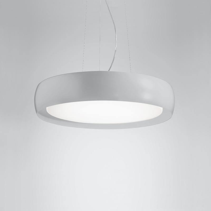 The simplicity of design and utilitarian profile makes the Treviso Suspension Light by Ai Lati a great addition to any décor scheme. Defined by a circular shape and simple curves, this suspension light features a strong framework that supports the lampshade made using satin finish triplex opal blown glass. It is fixed at the hollow center to emit light from all sides. The frame is finished in white, white/black and white/grey options. It is available in small, medium, large and extra-large sizes. The small-size version uses one E26 bulb, while the medium-size light uses two bulbs and the large-size lamp uses three bulbs. The extra-large version uses five bulbs.