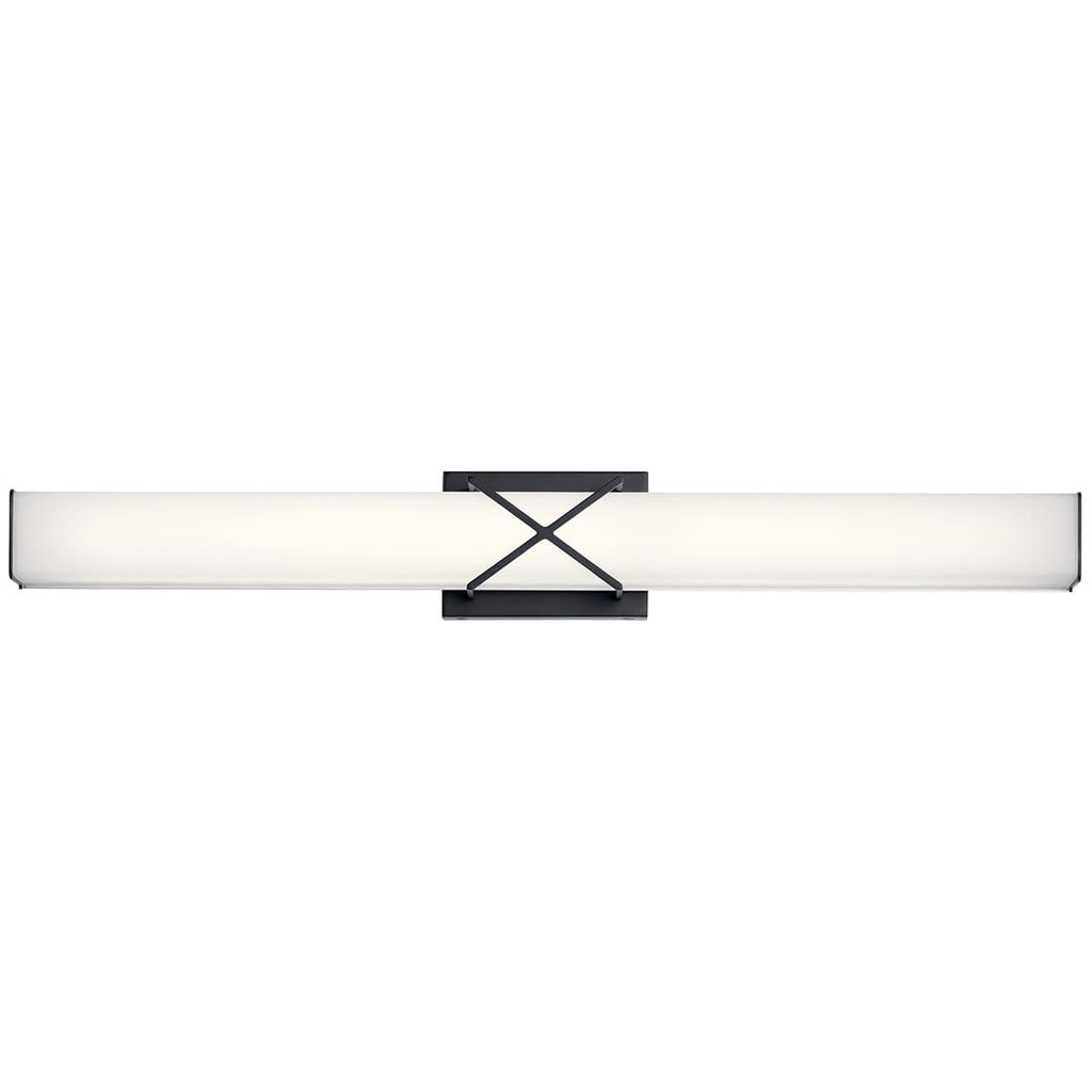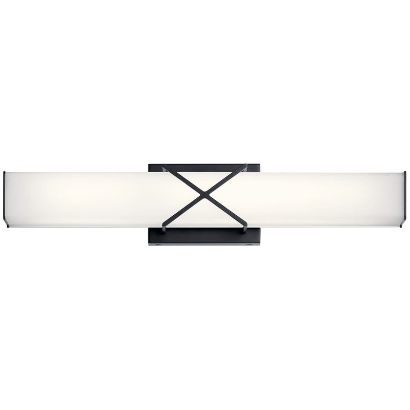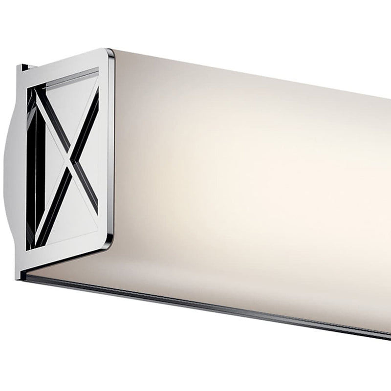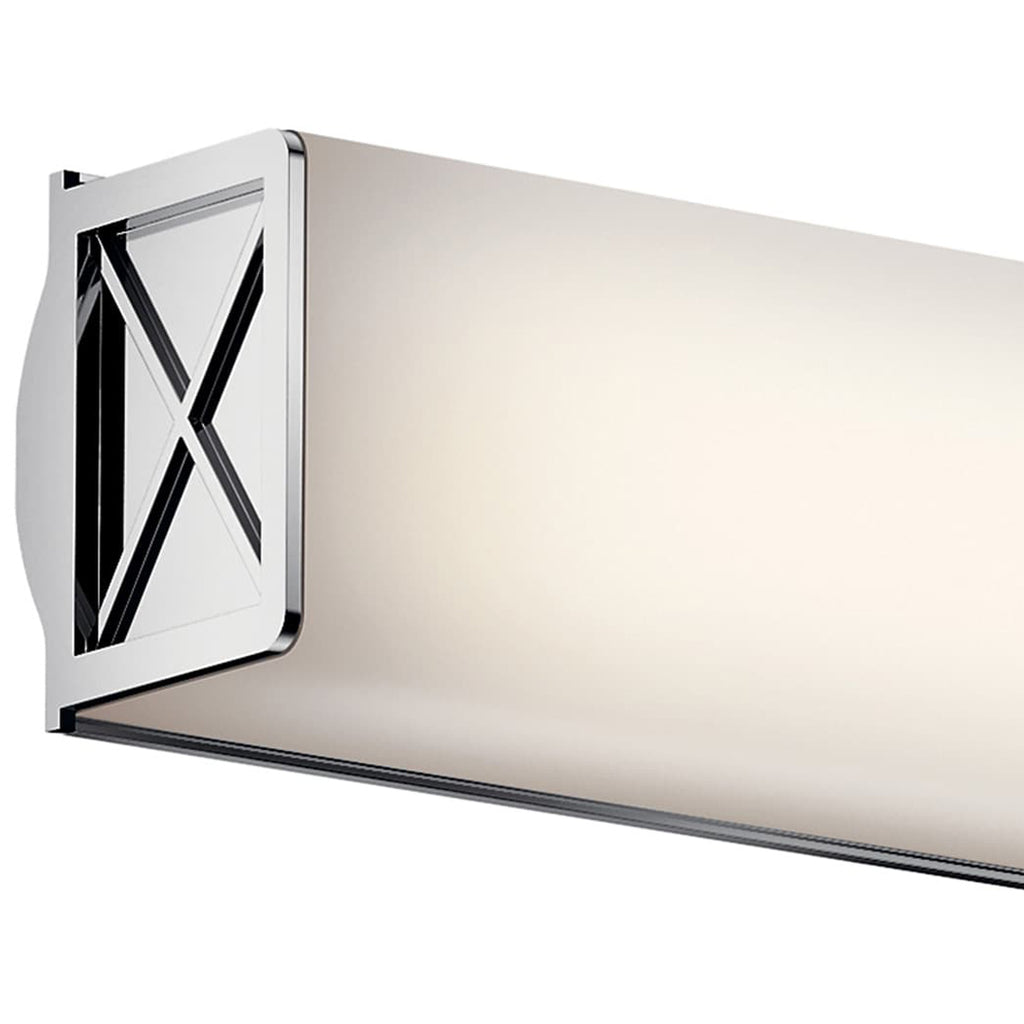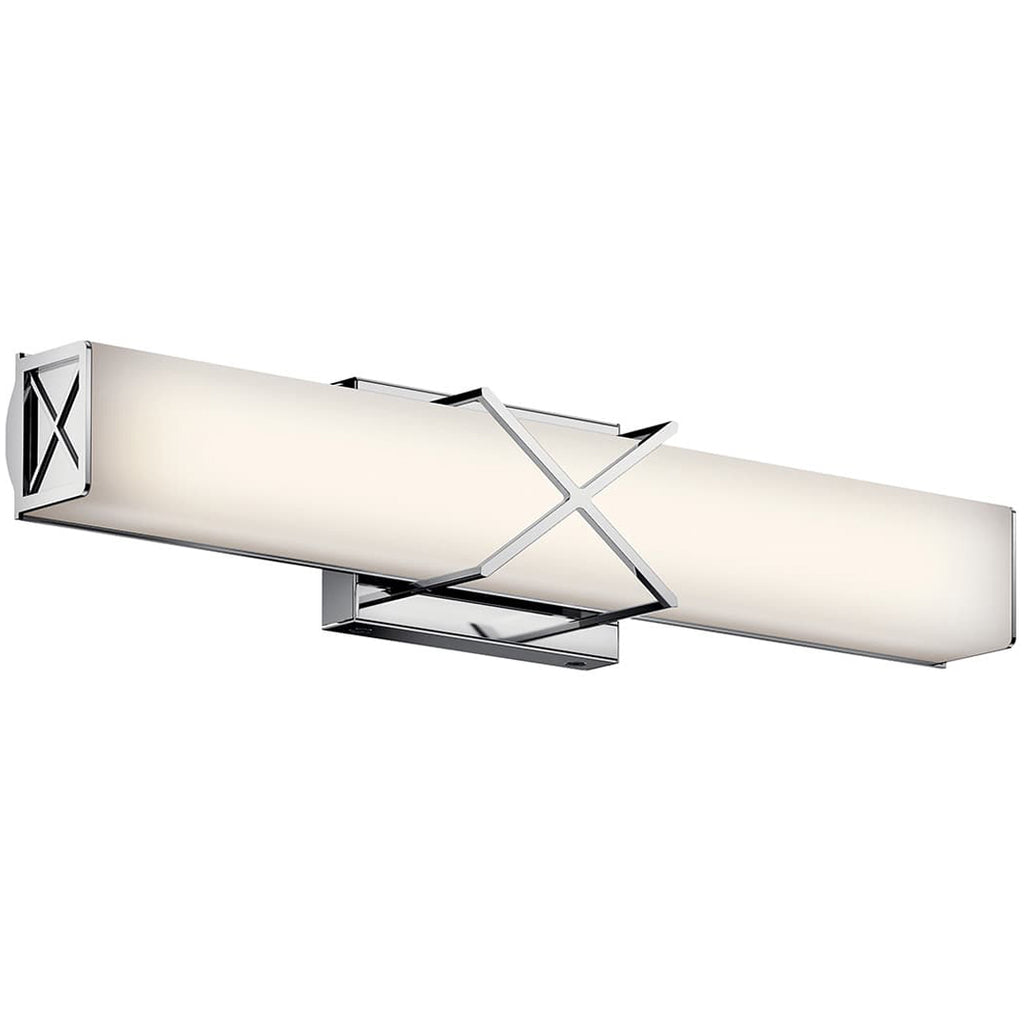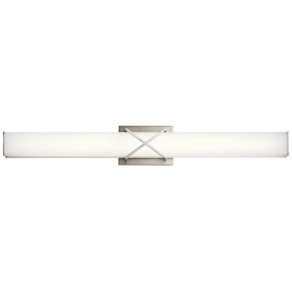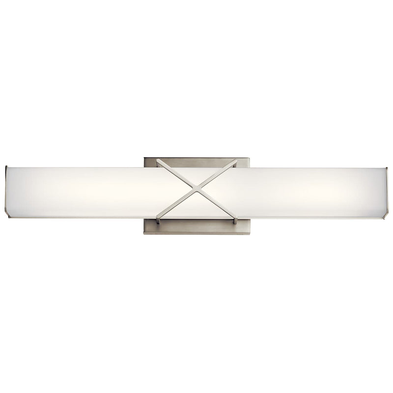 The 22 & 32" LED bath light of the Trinsic™ collection is an intricate, yet subtle aesthetic to complement any modern bath with Satin Etched White glass and a unique criss-cross design in a Nickel finish.