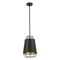 Lighten up any space beautifully with this Tura 1-Light Pendant by Eurofase. The captivating structure is made of metal and engrafted with an A19 light source. Use it in your kitchen, bathroom, living area, bedroom, walkways, foyers, or wherever you wish to create a magical soft glow. The light can be dimmed at night whenever required. This product is available in both black and brass finishes that are likely to complement any color setting.