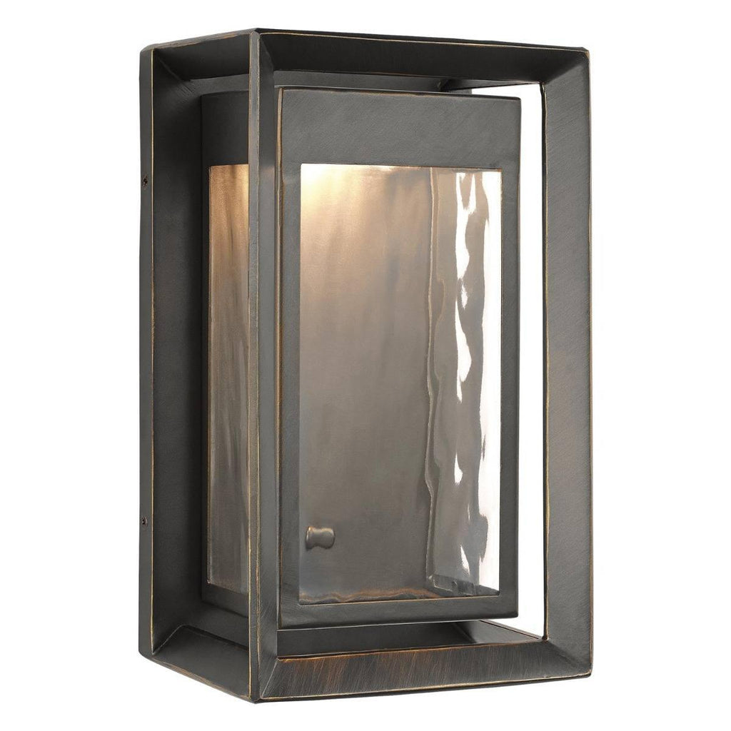 Add classic American outdoor decor to your home with this piece of Urbandale Outdoor LED Wall Sconce by Feiss. A deep weathered antique bronze finish is touched with painted burnished brass under-tones for a rustic look. Seeded glass and a squared-off candle holder ensure LED light source to provide all around illumination for porch areas. Beveled edges achieved with the fine precision of crisp die-cast construction help emit brighter light for entry areas. This outdoor light is offered in sizes of small, medium, large, x-large.