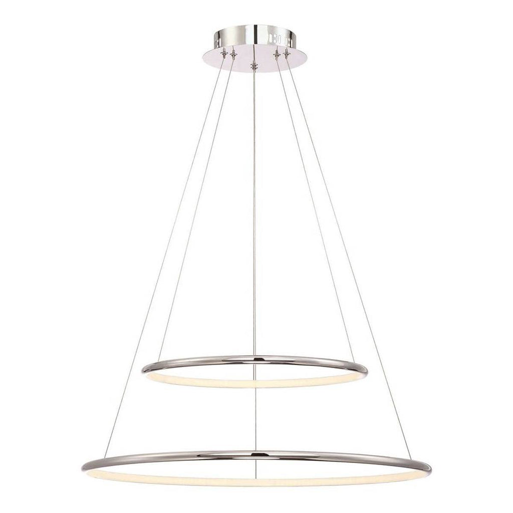 As the name suggests, the Valley Two Tier LED Pendant Light by Eurofase derives inspiration from the tiered levels of a valley to create an innovative design. This luminaire bears a modish profile where sleek rods and subtle curves give life to a light fixture that puts forward a subtle appearance that is signature to most contemporary designs. A top panel uses sleek rods to suspend two ring-shaped lampshades on different levels. Offered in medium and large size options, this LED pendant light is finished in chrome to create an elegant design.