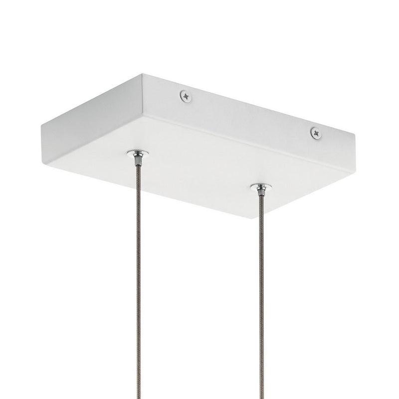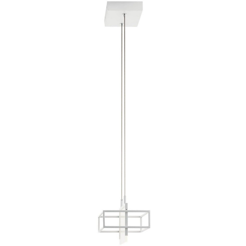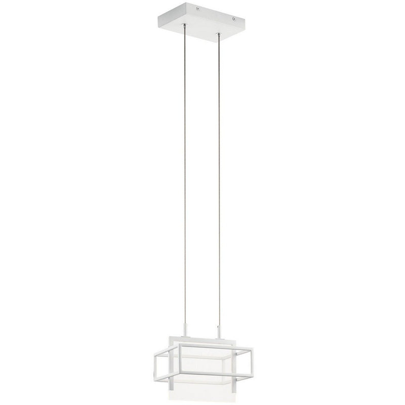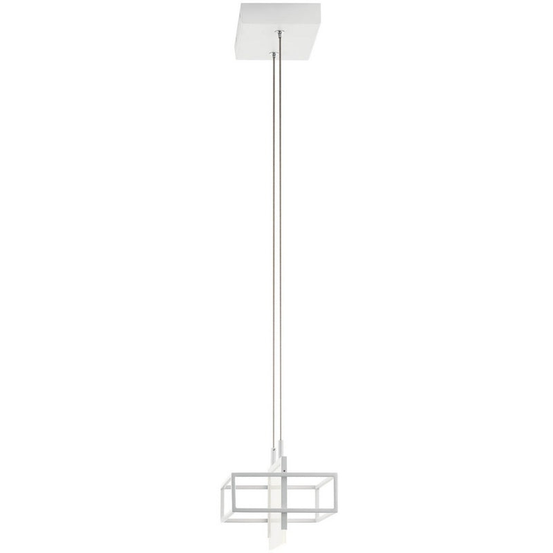 This Vega LED Mini Pendant by Kichler is designed to give a sophisticated look and feel to your interior. It features a geometrical appeal with a matte black or white frame holding the transparent acrylic light panel with a screen pattern. This LED-lit pendant gives ambient lighting to add brightness to your space. Its simple design makes it suitable for commercial spaces like auditoriums, meeting rooms, etc. Its warm white light will not strain your eyes.