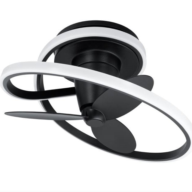 Unique and playful, the 28 Inch Veloce fandelier enhances modern settings with its eye-catching form. Two smooth rings wrap around each other, creating a thought-provoking display of intertwined metal and light as they enclose a trio of ABS fan blades that provides cooling breezes to spaces below. An integrated 28-watt LED luminaire delivers dimmable, 2700, 3000, 4000 and 5000K color selectable, 90CRI illumination. The fan’s streamlined style is offered in a choice of aged brass, black or titanium finishes. Control is easy with smart home ecosystems via the Modern Forms app, ensuring seamless integration with voice control devices like Google Home, Amazon Alexa, and Samsung SmartThings, or use the optional Bluetooth wall control.