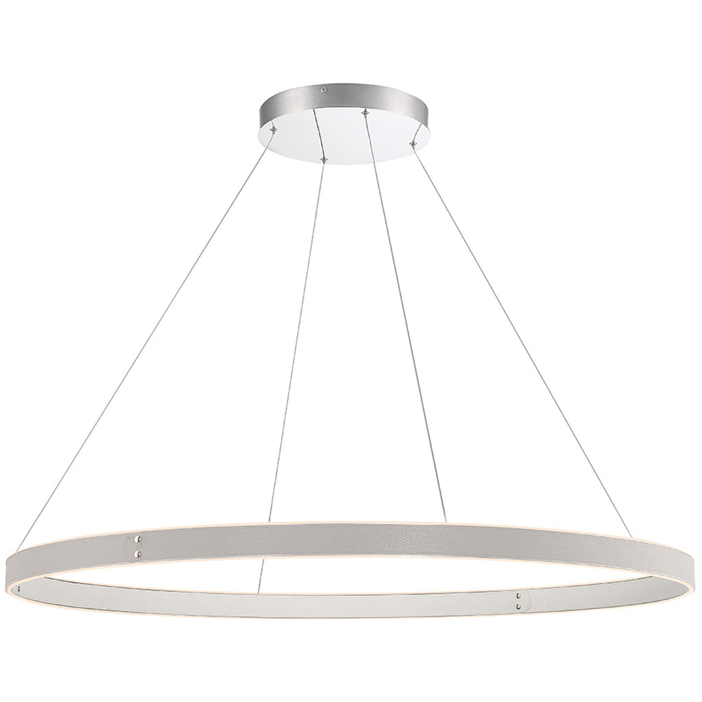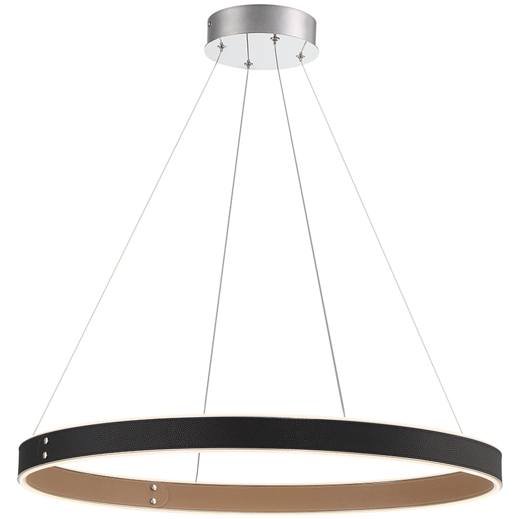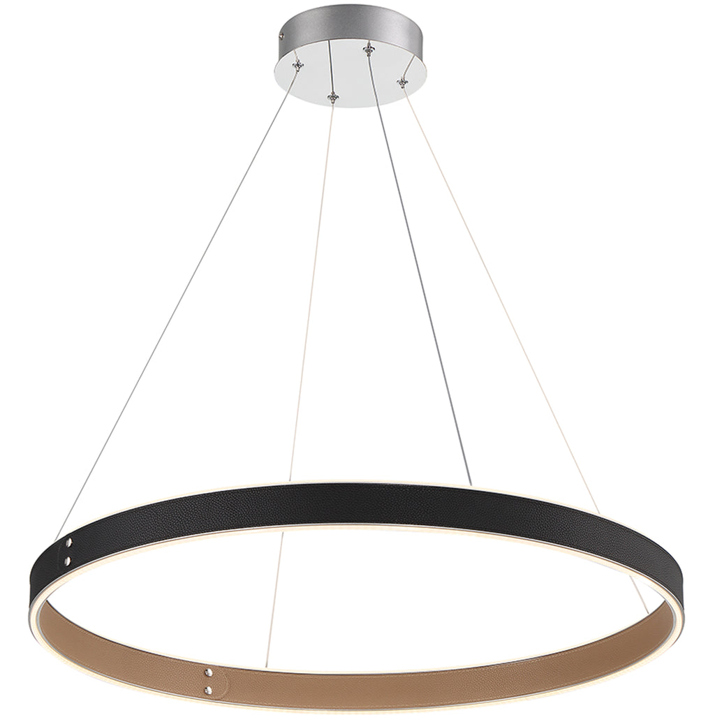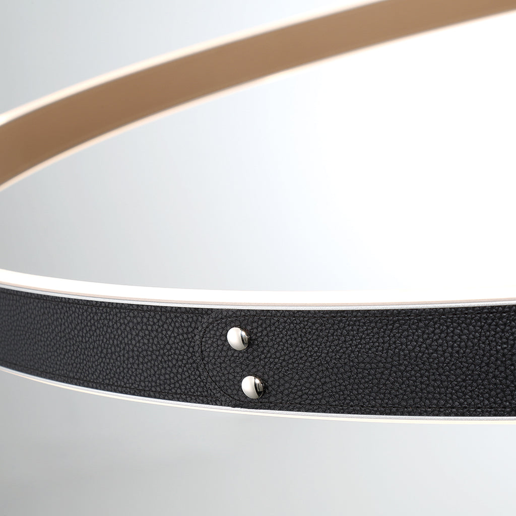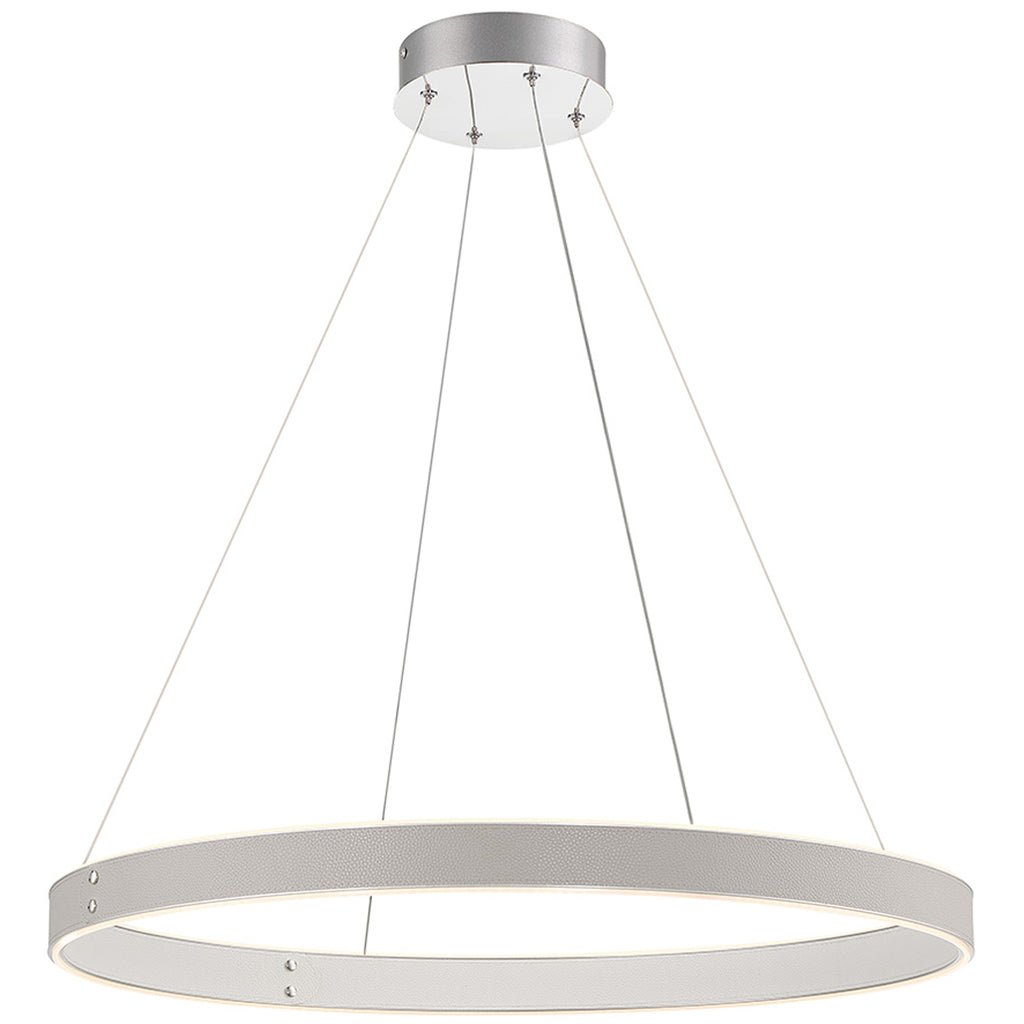 The Verdura collection features vegan leather, accentuated by decorative silver studs. The two-toned fabric highlights one color on the inside while displaying a complementary second color on the outer ring. The textured grooves are highlighted by the luminous glow of integrated LED lights that are encased between. This collection is not only abundant in size but also in the number of fixtures offered. Be it a small home office or a grand staircase, the Verdura collection is available in a range of fixture sizes to fit any room space.