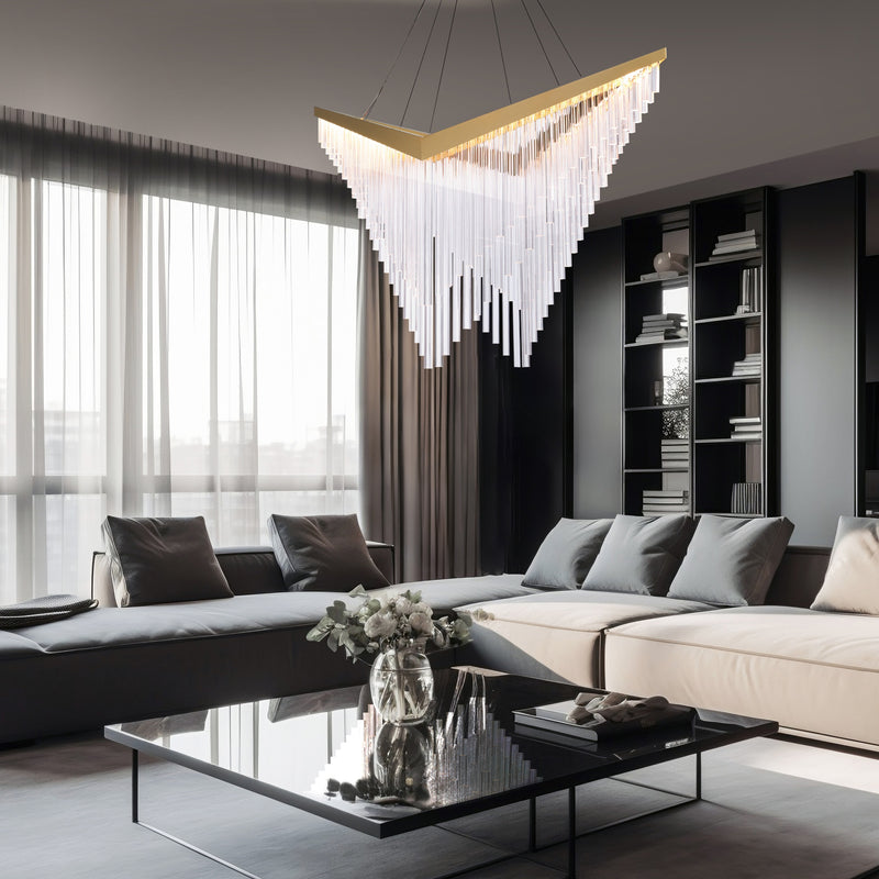 The chevron shape first found note in the heraldic services to the monarchy as proclaimer of news and information. Vivian uses a series of these “V” shapes to present stunning statements of lighting mastery that will instill a space with monarchical glory and timeless elegance.