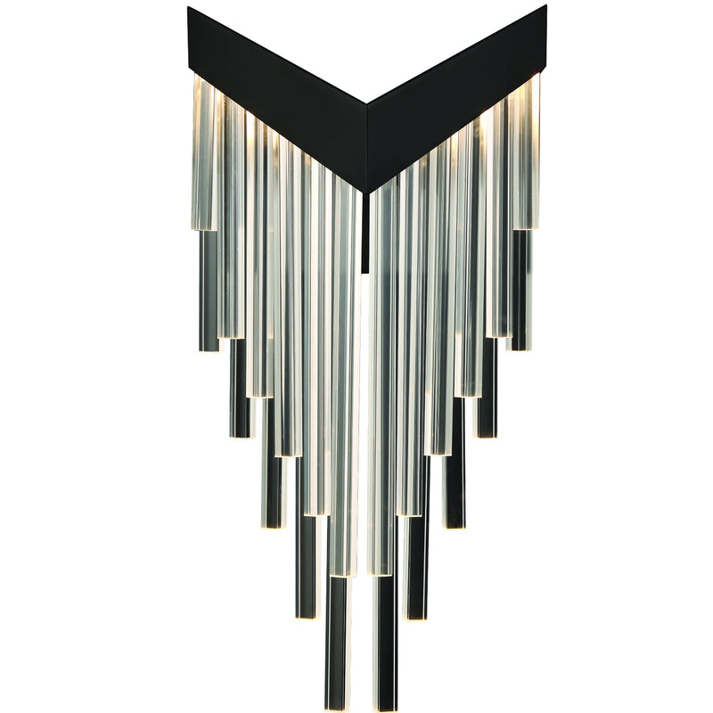 The chevron shape first noted in the heraldic services to the monarchy as a proclaimer of news and information. Vivian uses a series of these “V” shapes to present stunning statements of lighting mastery that will instill a space with monarchical glory and timeless elegance.