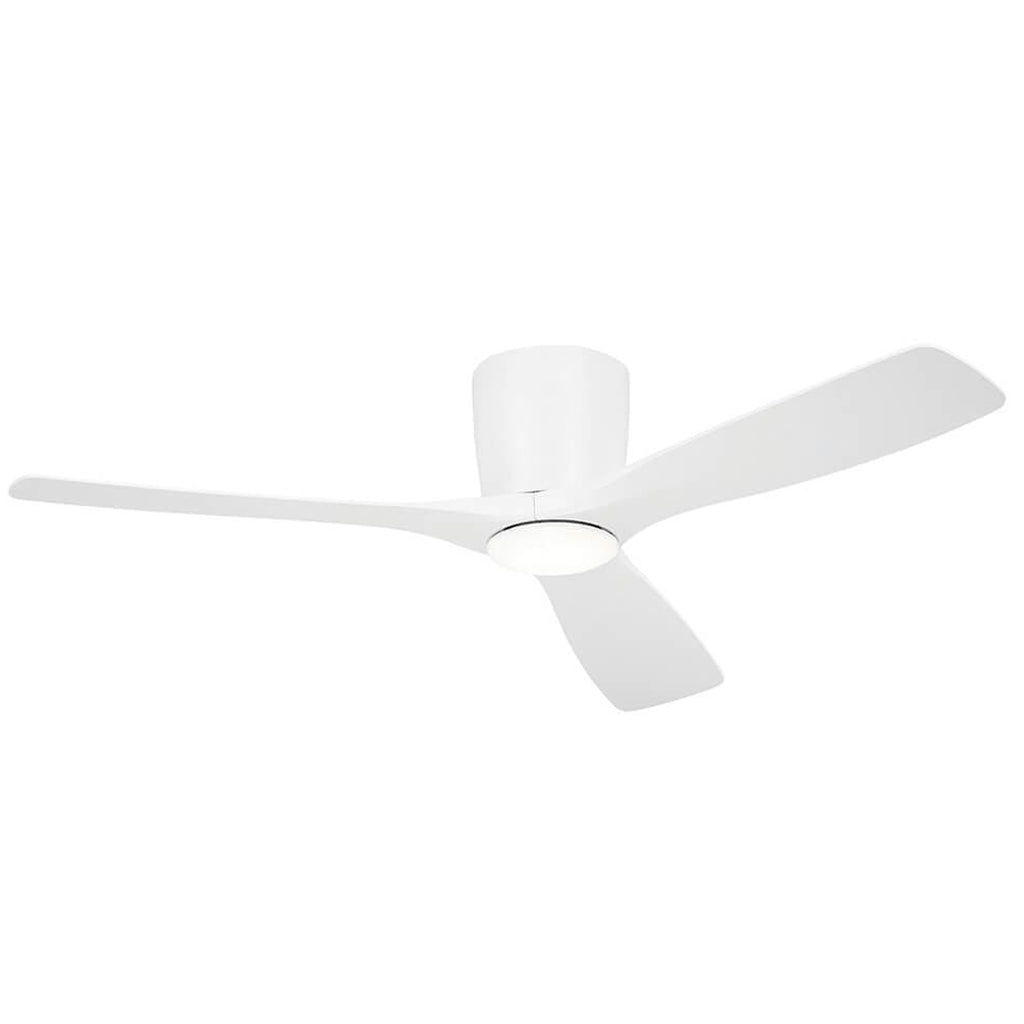 The Volos hugger-style ceiling fan offers a clean, modern look, beautifully sculpted blades, and a frosted white lens for a captivating glow. Delivering a modern Scandianvian style, the Volos collection brings illumination and stylish simplicity to any space.