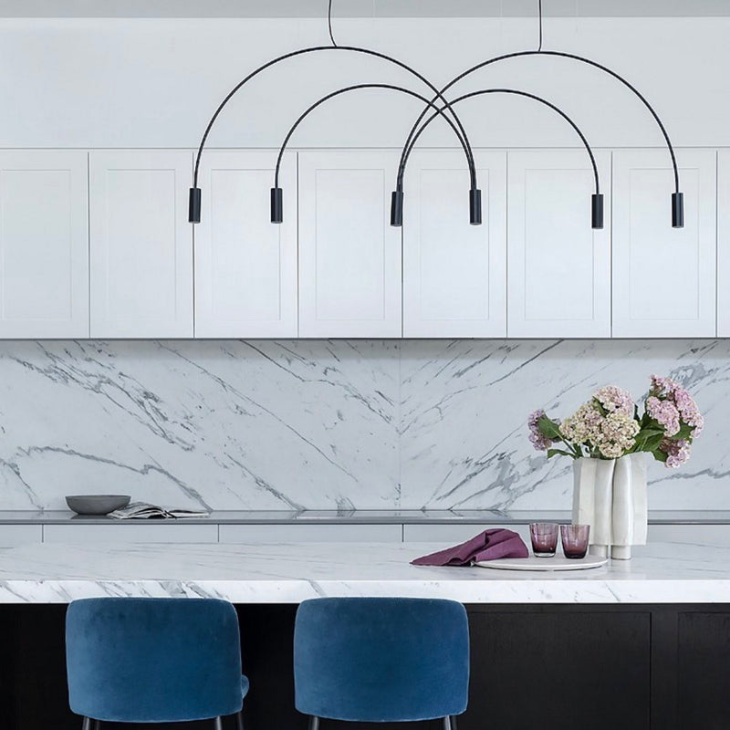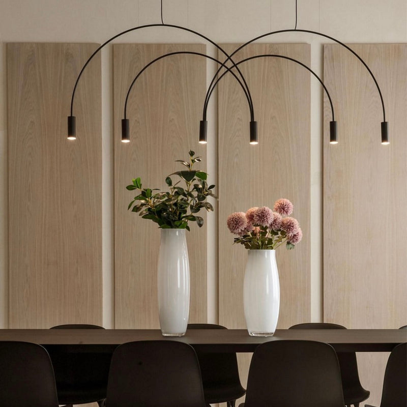 Suspension lamp with metal body with integrated dimmable LED, cylindrical aluminium heads and acrylic (PMMA) lens diffusers. Adjustable height and individual canopy, suitable for creating compositions. Ideal for the living room, dining room, kitchen island, bedroom, bar, restaurant, hotel and retail shop. Please note: The finish option refers to the body color, and the color option refers to the head