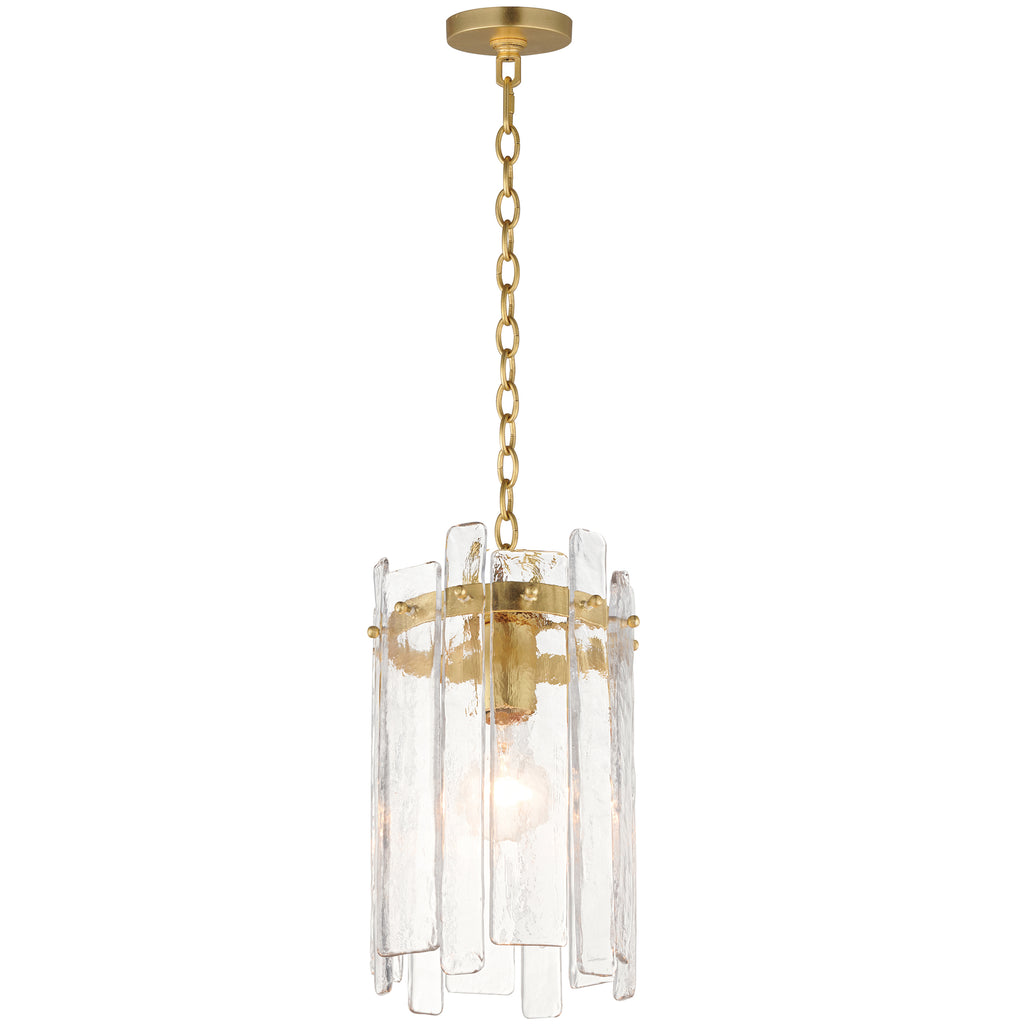 Gracefully flowing molten glass panels with uniquely organic aesthetic encircle rings of rich Darkened Bronze metal or hand-applied Gold Leaf. This refined interpretation of tiered glass pendants exudes warmth and elegance, effortlessly blending a moody ambiance with timeless contemporary charm. Available in a variety of pendant configurations as well as coordinating wall sconce and semi-flush mount.