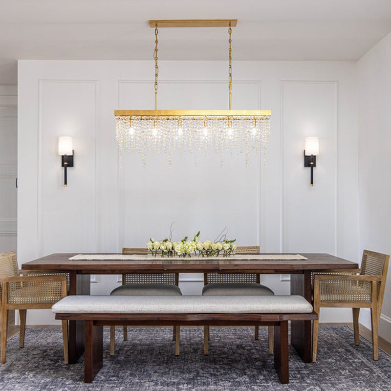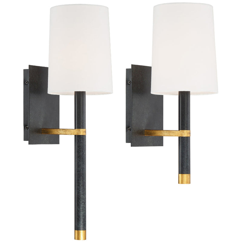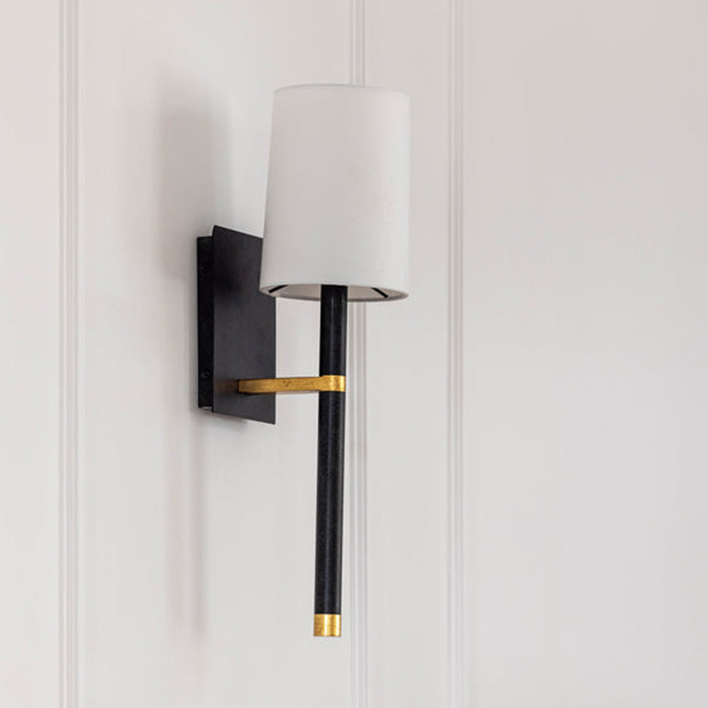 Elegant in its simplicity, the Weston wall sconce adds a bit of drama without overwhelming the space. The classic linear lines and crisp white shade make a luxurious yet simple statement. The Weston looks handsome hung along a staircase, hallway, or in a dining room.