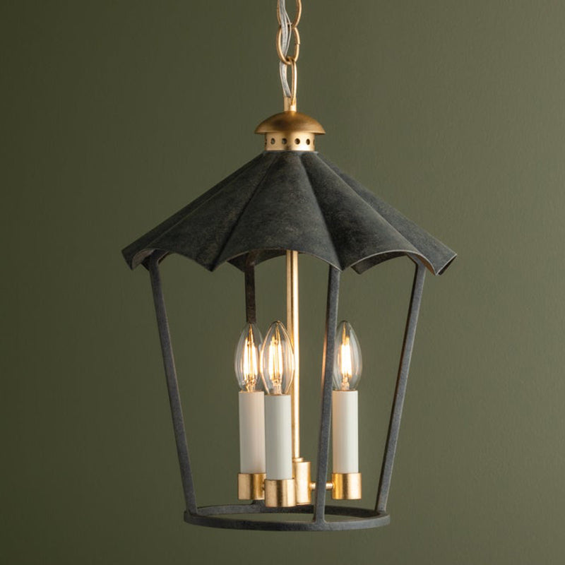 This charming lantern is a direct response to the resurgence of vintage motifs in interior design. Finished in French Iron and Vintage Gold Leaf, the slim cage exudes a timeless elegance. The retro ruffled hood receives a modern update with exaggerated peaks and valleys that feel fashion-forward and fun. Available with 3 or 4 lights.
