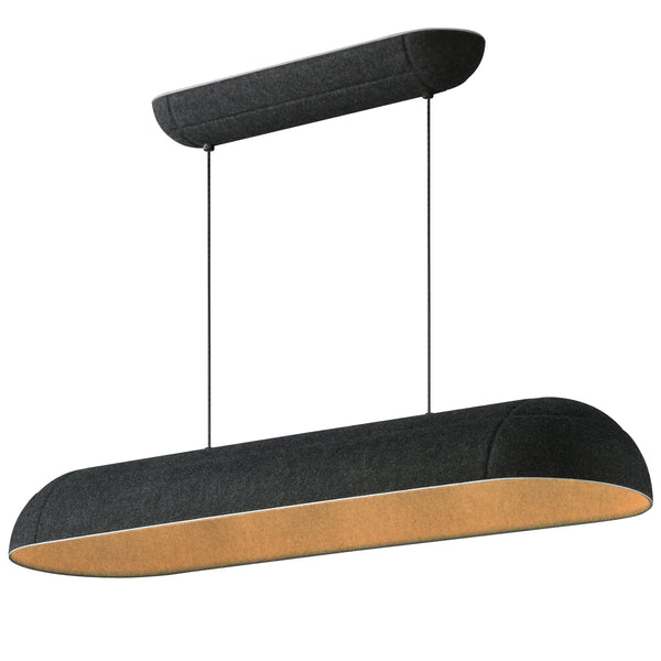 Balancing work and play, the Wimbeldon collection is a fun collection of lighting fixtures that utilizes dual-layered sound dampening felt shades that enhance the acoustics of a space. The deep ridged pattern gracefully intersects elevating the simple forms. Choose from linear or half dome configurations in various colors: Dark Grey and Light Cream felts offer more neutral tones while the Olive exterior with Black felt interior presents a more colorful option. Housed within the shades are high powered LED modules that provide ample functional down lighting
