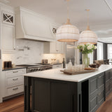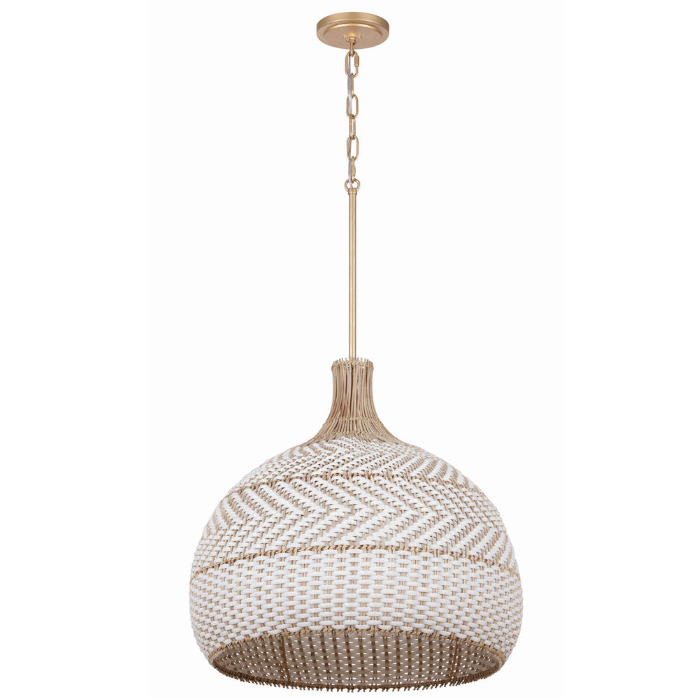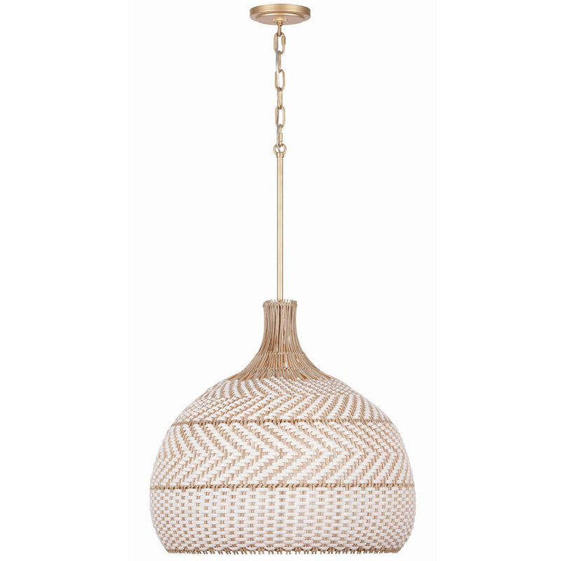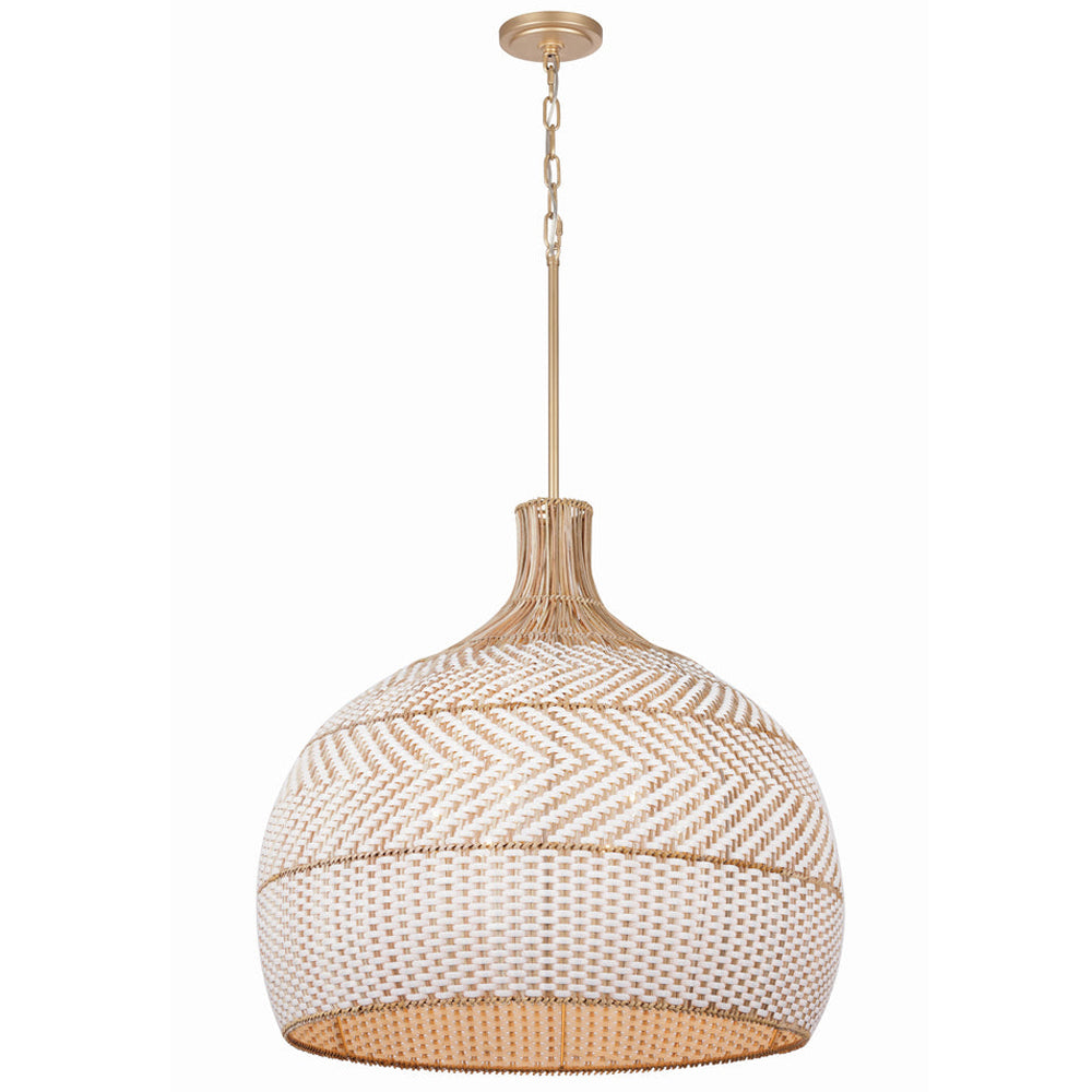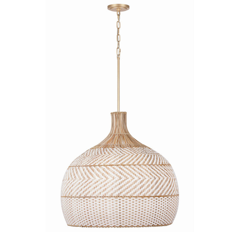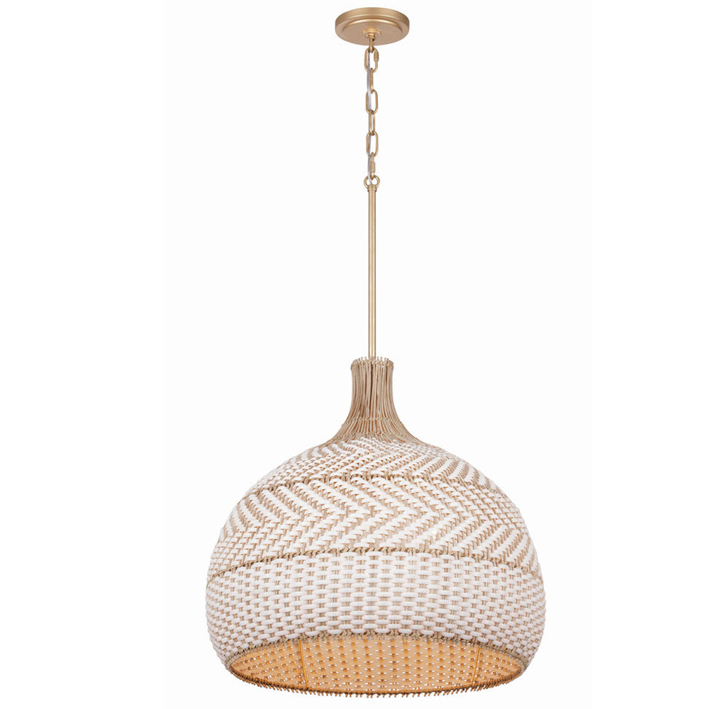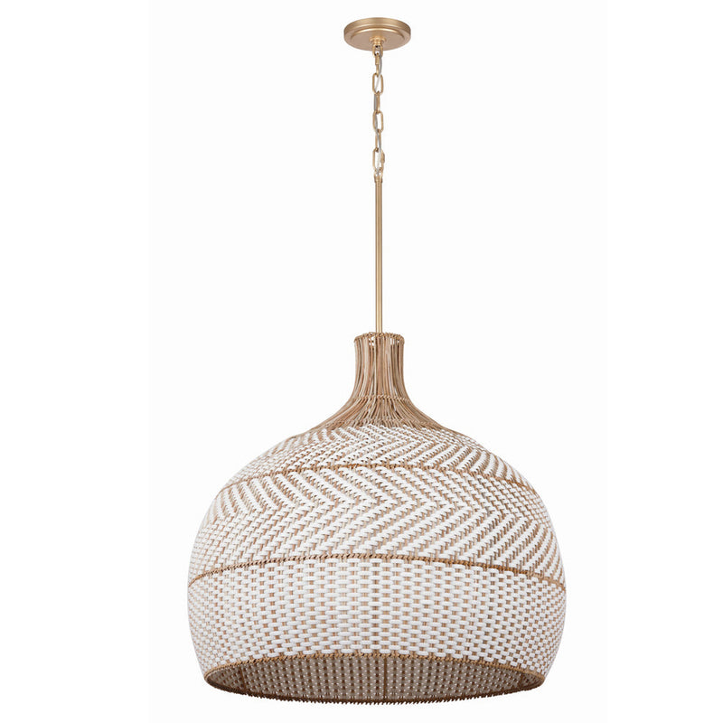 The Zanzibar Collection is an embodiment of laid-back luxe and thoughtful simplicity. By marrying the natural textures of natural rattan with white and/or black lanyard, the fixture introduces a striking color palette with a soft gold finish that instantly brings comfort and style to a living space Handcrafted with precision, the intricate weave introduces texture and depth to your décor. Whether suspended over a breakfast nook or in pairs above a kitchen island, the Zanzibar exudes an earthy, elegant charm that brings an artisanal touch to your decor.