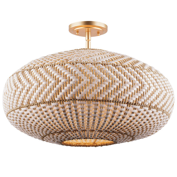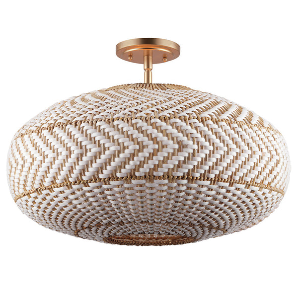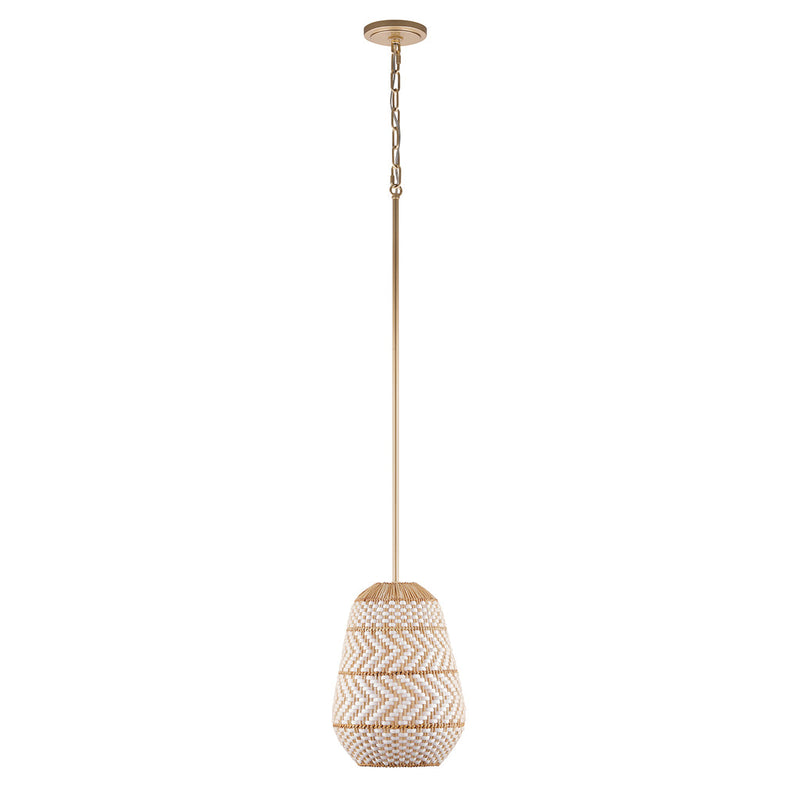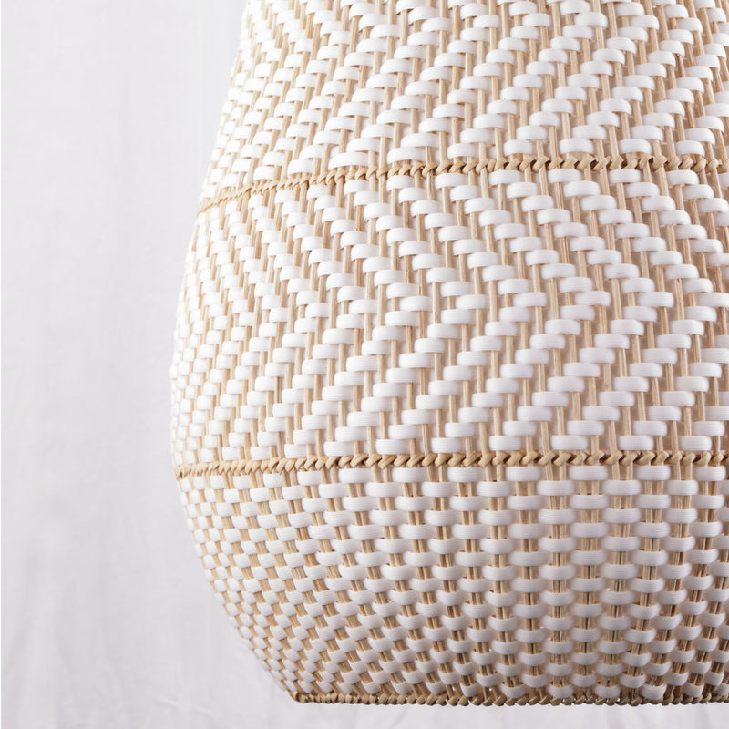 The Zanzibar Collection is an embodiment of laid-back luxe and thoughtful simplicity. By marrying the natural textures of natural rattan with white and/or black lanyard, the fixture introduces a striking color palette with a soft gold finish that instantly brings comfort and style to a living space Handcrafted with precision, the intricate weave introduces texture and depth to your décor. Whether suspended over a breakfast nook or in pairs above a kitchen island, the Zanzibar exudes an earthy, elegant charm that brings an artisanal touch to your decor.